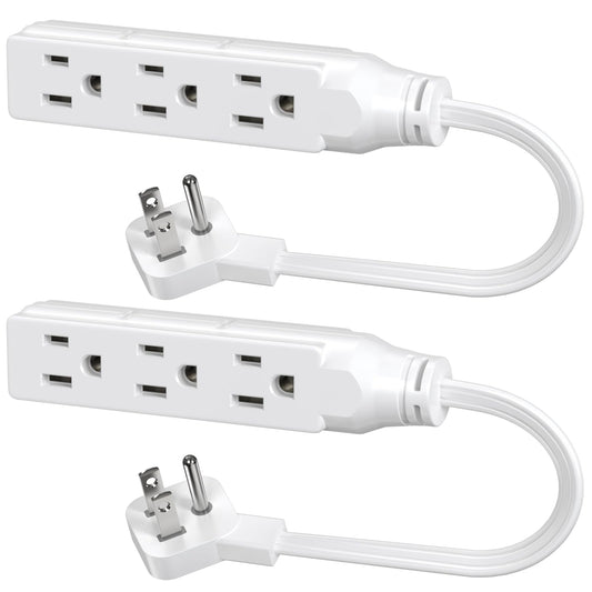 1 FT Short Power Extension Cord, HITRENDS 3 Outlet Extension Cord, 3 Prong Grounded Wire, SJT 16 AWG Flexible Power Cord, 15 Amp, 125V, 1875 Watts, White - 2 Pack