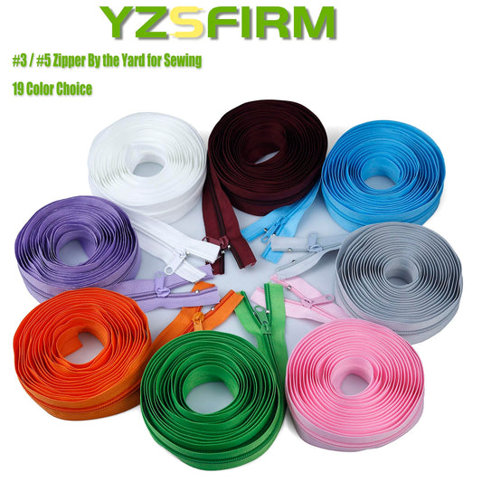 #5 Nylon Zipper Tape for Sewing: YZSFIRM 10 Yard Zippers by The Yard Nylon Coil Zippers for DIY Sewing Craft - Replacement Zipper Roll with 10 Bulk Metal Zipper Slider - 10 Double Zipper Slide (00 Color, #5 Zipper)