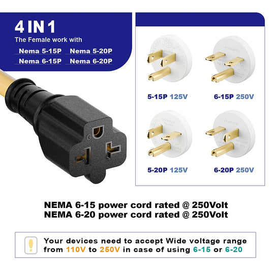 (1.5Feet) Heavy Duty SJTW 12AWG Outdoor Waterproof Extension Switch Cord, in-Line On/Off Switch Extension Cord, IP57 Waterproof,Max.20A 125V 4-in-1 T-Blade Female.