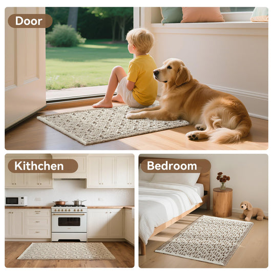 Waffle Bathroom Rugs, Extra Soft and Absorbent Non Slip Bath Mat Washable Boho Bath Rug, Rubber Backed Shower Mat for Bathroom Floor, Bathtub and Shower, 24x36