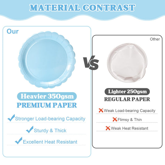 Vyntra 175 PCS Disposable Paper Plates & Napkins Set, Light Blue Party Dinnerware – Baby Shower, Birthday, Gender Reveal