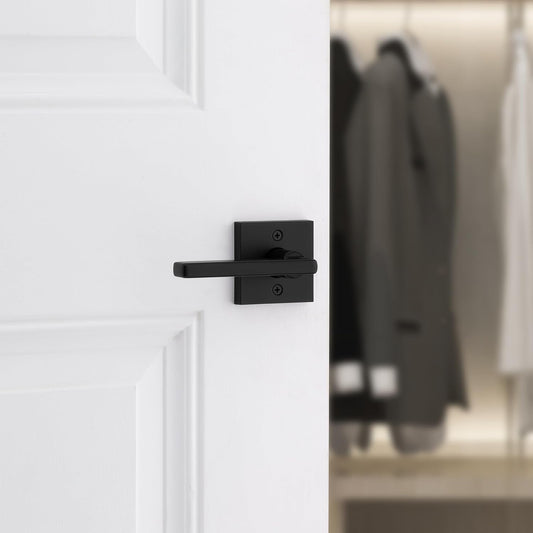 Weiser Breton Matte Black Passage Door Handle, Modern Décor Door Hardware, Reversible Hall/Closet Door Handle, Microban Embedded Finish