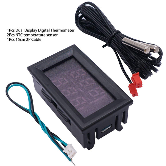 weideer Dual Display Fahrenheit Thermometer DC 4-28V -67~+248℉ with Dual LED Display 2 Waterproof NTC Probes High Accuracy Temperature Gauge Sensor K-017