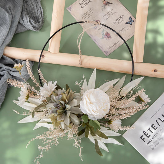 Weldomcor Artificial Floral Wreath for Front Door Floral Hoop Wreath Decor with White Flowers Green Leaves Garland Spring Wall Window Home Hanging Decorations