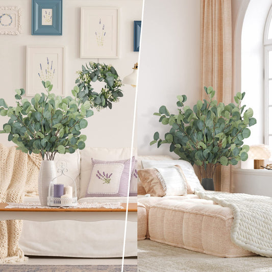 Weldomcor Artificial Eucalyptus Stems, 35 inch Artificial Silver Dollar Leaves Fake Eucalyptus Branches for Wedding Party Flower Arrangement Home Decoration, 4PCS