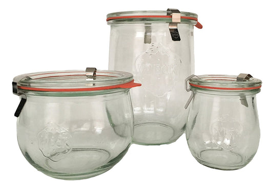 Weck Tulip Jar Combo Pack- (1) 762, (1) 744, (1) 745, (3) glass lids, (3) rubber rings and (6) clamps by Weck