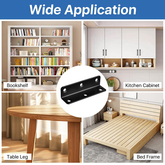 Worldity 15 Pcs Corner Brace, 3.15 x 0.78 Inch Black L Bracket, Stainless Steel Corner Bracket with 90 Pcs Screws, 90 Degree Black Angle Bracket for Wooden Furniture, Shelf, Bed, Desk, Chair