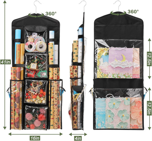 Wrapping Paper Storage, Gift Wrap Organizer Holder Double-Sided Hanging Gift Bag Storage Organizer (Black)