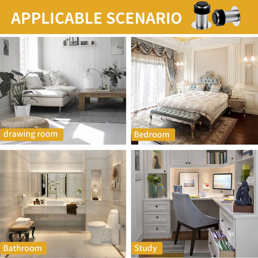 VIKKSAER Door Stoppers, 4 PCS Floor Door Stops, 2 1/2 Inch Stainless Steel Modern Commercial Heavy Duty Solid Door Holder with Soft Rubber Bumper, Cylindrical Floor Mount Doorstops Wall Protector