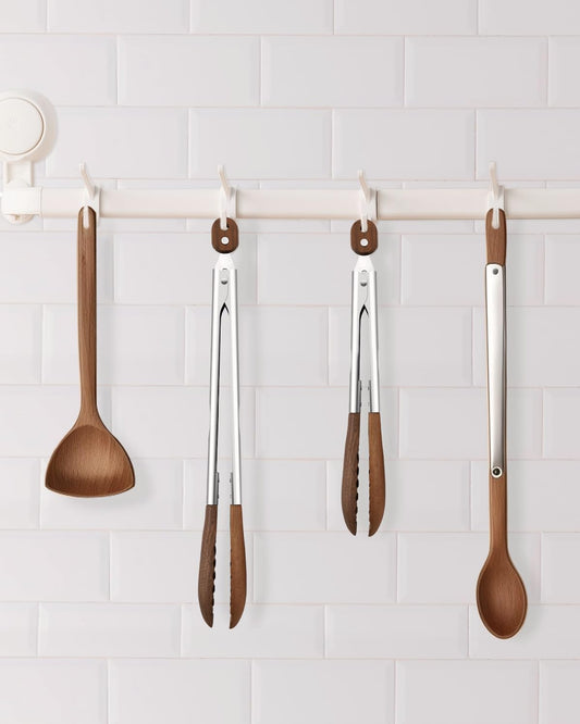Wooden Tongs for Cooking, 2-Piece 10 & 13 Inch Kitchen Tongs Set with Locking Mechanism, Stainless Steel with Walnut Wood Tips for BBQ, Salad, Serving Utensils — Essential Kitchen & Home Gadget Set