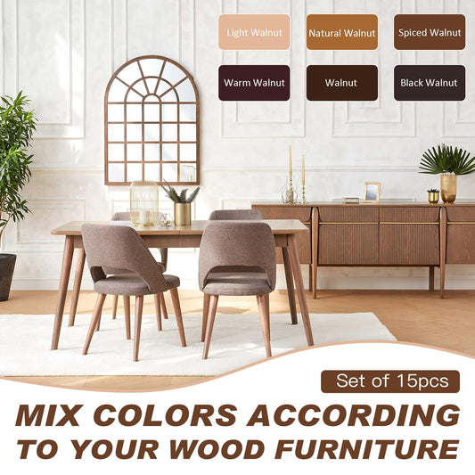 Wood Furniture Repair Kit, 6 Colors Wood Filler Hardwood Laminate Vinyl Floor Repair Kit with Wood Putty, Wood Polish Wax for Hole, Scratch, Crack, Stain (Walnut Wood 15Pcs)