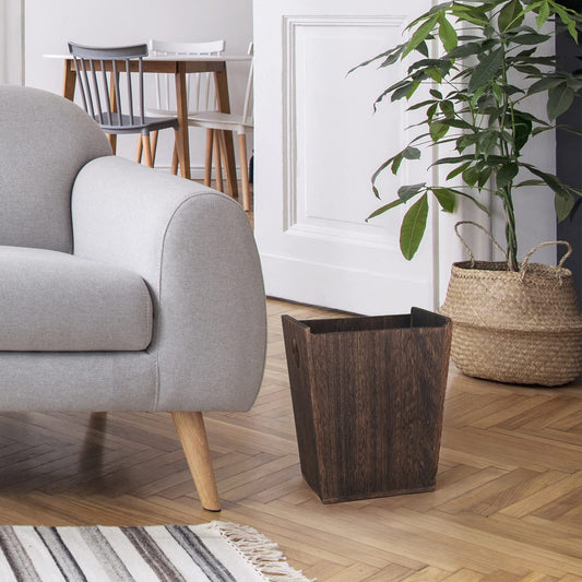 Wood Waste Basket Small Rectangular Trash Can with Handle Compact Garbage Container Bin for Kitchen, Bathroom, Home Office, Farmhouse, Rustic Brown