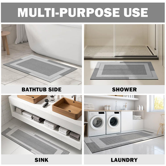 YDKGL Non Slip Bath Mats for Bathroom, Quick Dry Super Absorbent Stain Resistant Rubber Backing Bath Rugs, Ultra Thin Bath Mat Fit Under Door Bathroom Floor Bathtub Shower Room, Gray 20"x 32"