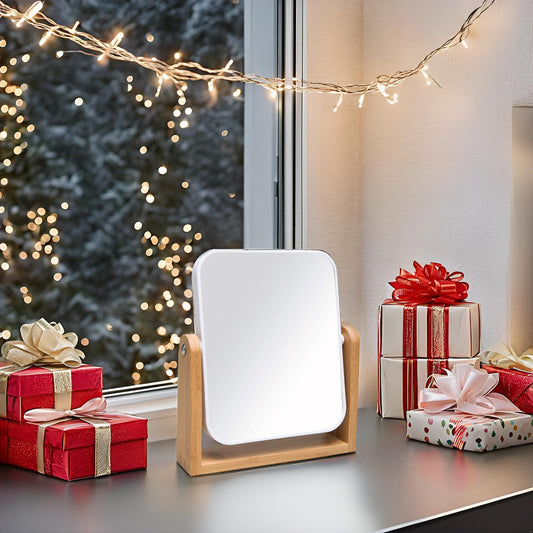 YEAKE Vanity Makeup Mirror with Natural Bamboo Stand,8 Inch 1X/3X Magnification Double Sided 360 Degree Swivel Magnifying Mirror,Portable Table Desk Countertop Mirror Bathroom Shaving Make Up Mirror