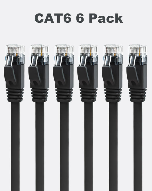 Yauhody 15ft CAT6 Ethernet Cable Black, High Speed Solid Flat CAT6 Gigabit Internet Network LAN Patch Cords, Bare Copper Snagless RJ45 Connector for Modem, Router, Computer (15ft 6Pack, Black)