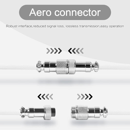 Yindiao x Attack Shark C01PRO Custom Braided Coiled Keyboard Cable, USB-C to A Metal Aviator Cable for Gaming Keyboard, Detachable Double Sleeved Spiral Cable for Mac Win PC Mouse-White
