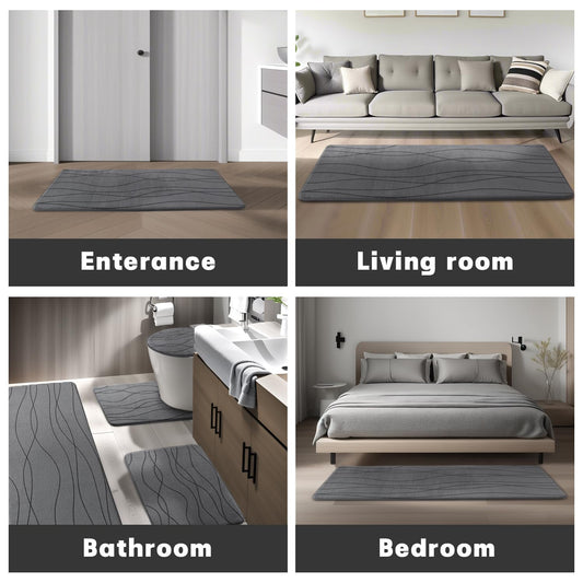 YIHOUSE Memory Foam Grey Bath Mat Set 2 Piece, Ultra Absorbent Bath Mat for Bathroom - Non-Slip Machine Washable & Dry Quickly, 2 Piece Bathroom Mat Set, Dark Grey