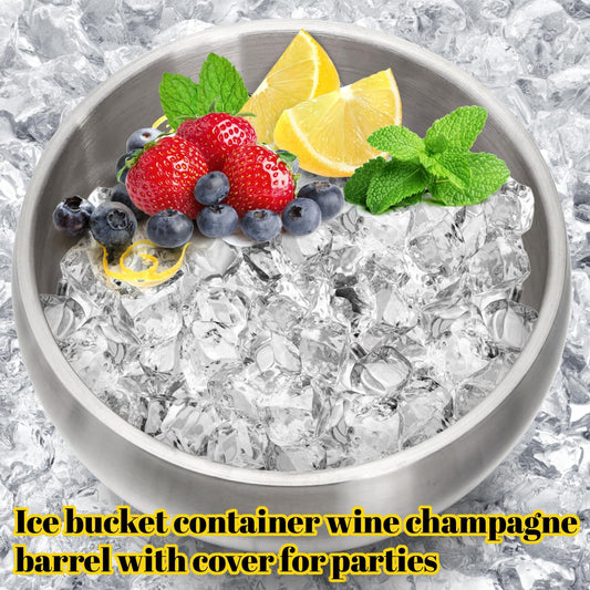 Yesland Ice Bucket with Lid, Double Insulation Ice Box Container Storage Box, 2 L Stainless Steel Ice Bucket Container with Ice Tong Scooper, Spherical Wine Champagne Barrel for Home Party Bar