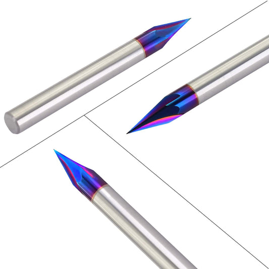 YOKISHUN 30 Degree V Bit 1/4"" Shank, Carbide CNC Chamfer End Mill, 3-Flute V Groove Router Bit with Blue Nano Coating for Wood CNC Engraving Carving