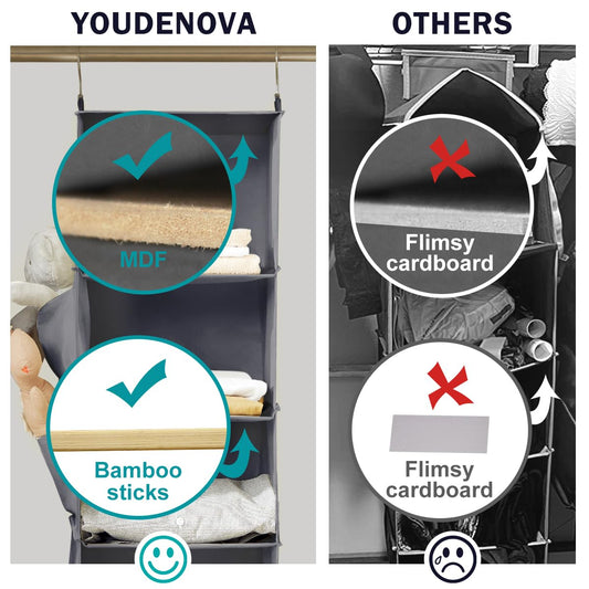 YOUDENOVA Hanging Closet Organizers and Storage, 6-Shelf Closet Hanging Storage Shelves, Grey