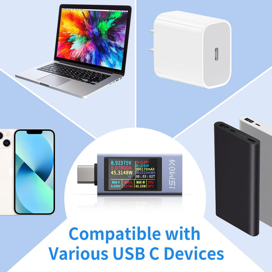 YOJOCK USB C Tester USB Power Meter 2 in 1 Digital Multimeter 3.6-32V 0-5.1A Voltage and Current Tester, Type C Voltmeter Battery Capacity Volt Ammeter Power Bank USB Cable Charger Detector