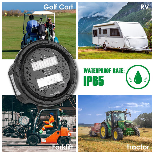 Yooreal 12/24V 36/48V 72V Golf Cart Battery Meter,Hour Meter&Battery Indicator Gauge Meter Lead-Acid Battery,Charging Reminder,Easy Installation for Golf Cart Club Car RV Forklift Tractor ETC