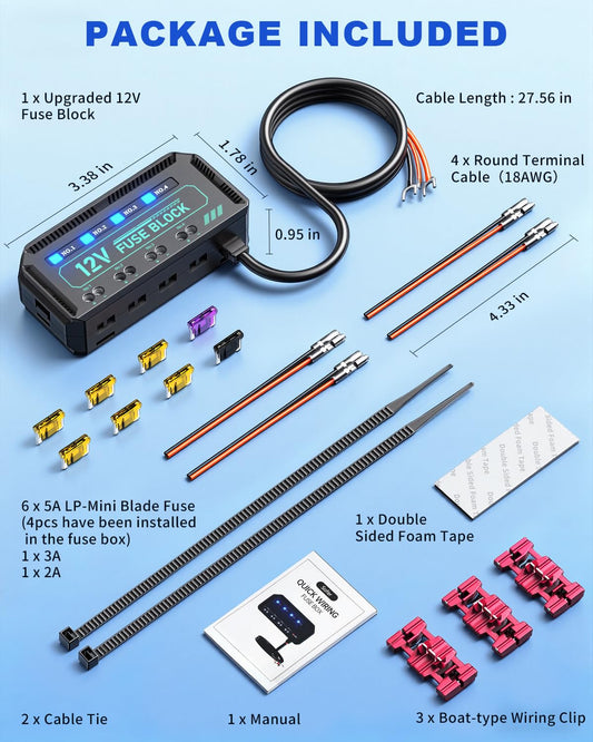 ZEXMTE 12V Fuse Block, Universal 20A Relay Box Kit with 4 Circuits Low Profile Mini Blade Fuse Holder, Battery Fuse Box Terminal Block for 12V Vehicles, Automotive Car Boat Marine Trike, Motorcycle