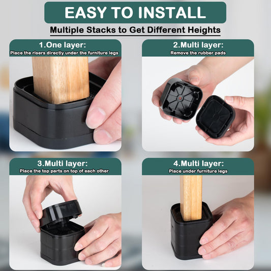 Zeylju 24 Pack Furniture Risers, Bed Risers,Heavy Duty Square Stackable, Adjustable Height 1.38/2.17/2.9 Inch for Bed,Desk,Sofa,Chair,Table Leg Lift, Washer Machine Storage Lifts Appliances(Black)