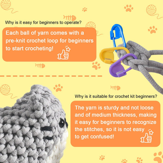Zepiany Crochet Kit for Beginners, Crochet Cat Crafts for adults, Amigurumi Crochet Animals Craft Kit Crochet Set, Easy Christmas Gifts with Step-by-Step Video Tutorials, Hobbies for Adults Women