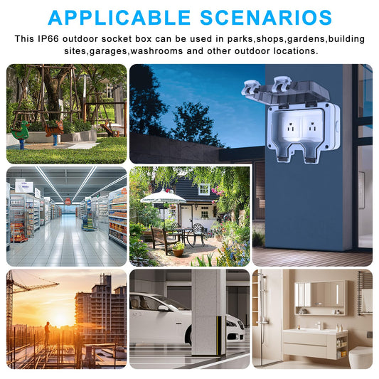 Zhushan Outdoor Weatherproof Wall Power Socket - Dual Function: Single 15A Waterproof Socket w/ 2 Gang Switched Cover, IP66 Rated, Lockable - Ideal for Garden, Outdoor, Indoor Use (125V/110-250V