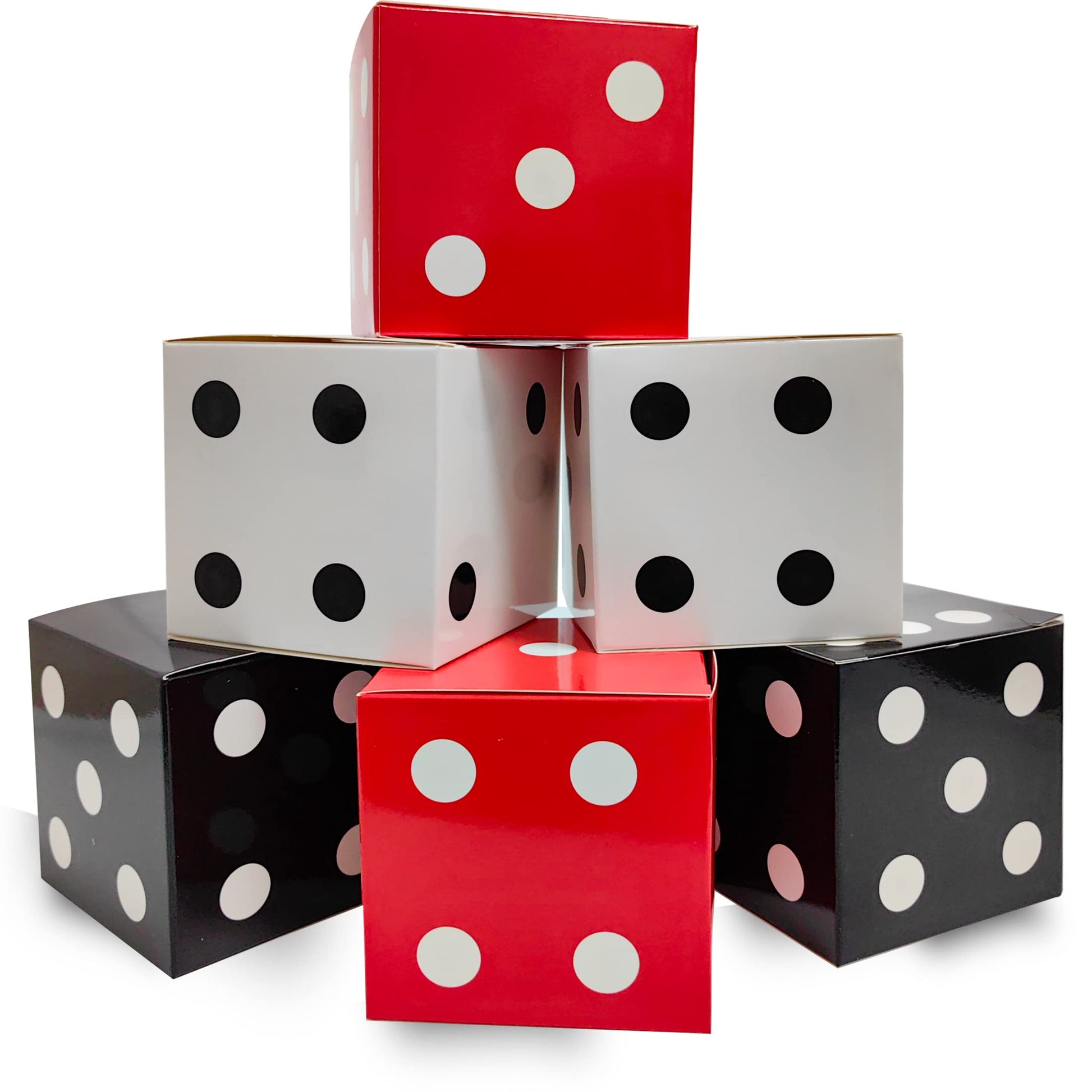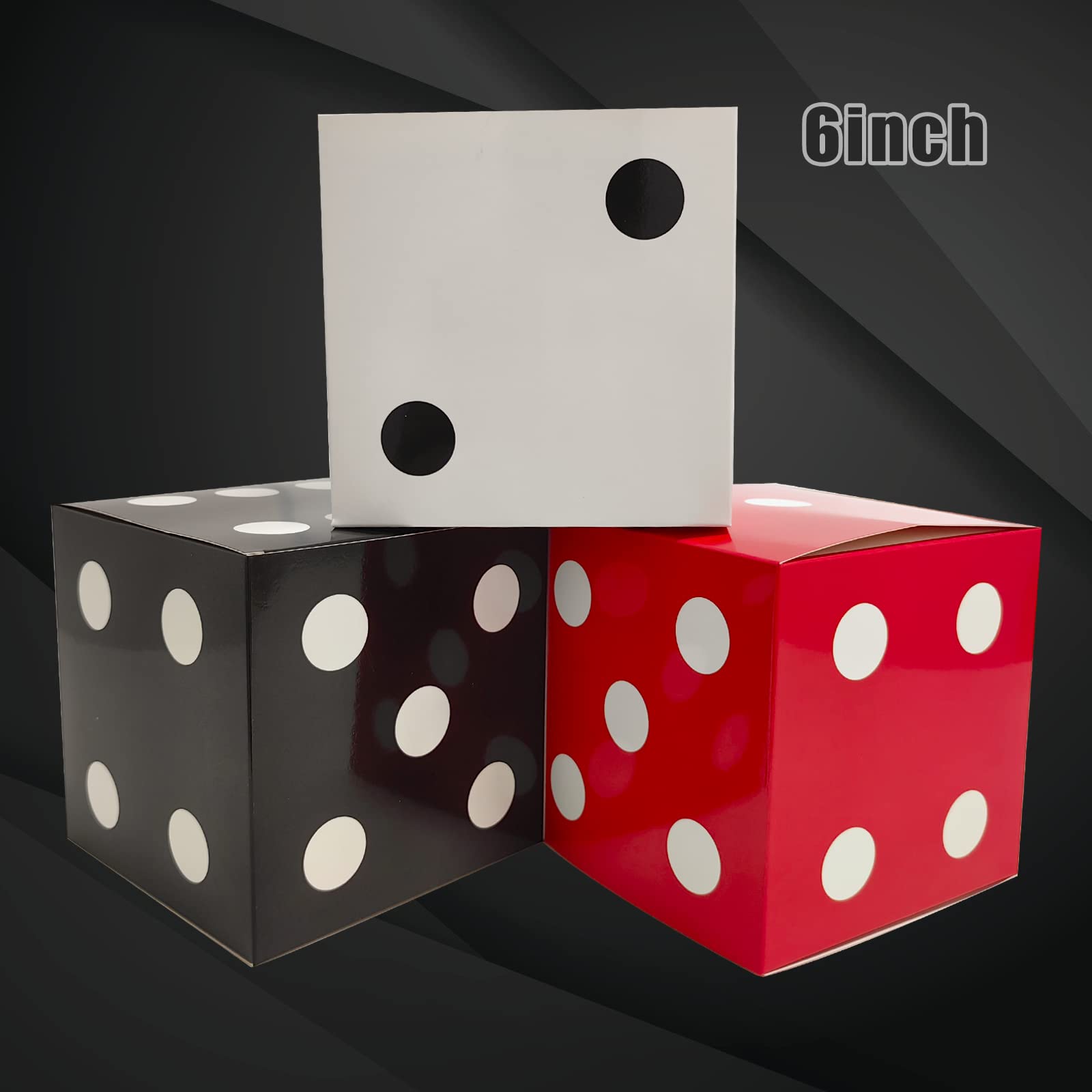 12 Pcs Dice Favor Boxes 6 x 6 x 6 Inch dice Boxes Bulk for centerpieces Casino Party Decorations Game Night Decorations Casino Themed Party Goodie Boxes Gift Box (Black, White, Red)