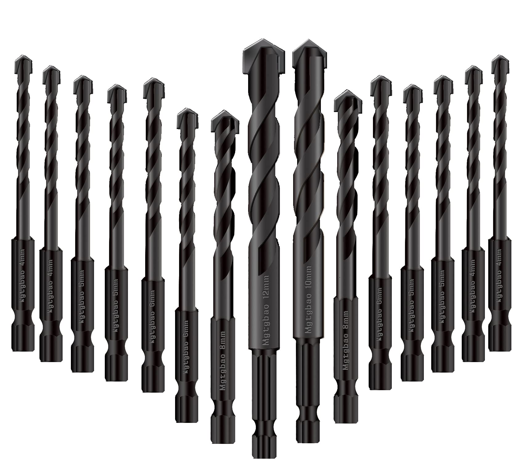 15 pcs Black Masonry Drill Bits Set, Mgtgbao Ceramic Tile Drill Bits Carbide Tip for Glass, Brick, Tile, Concrete, Plastic and Wood with Size 4mm,5mm,6mm,8mm,10mm,12mm