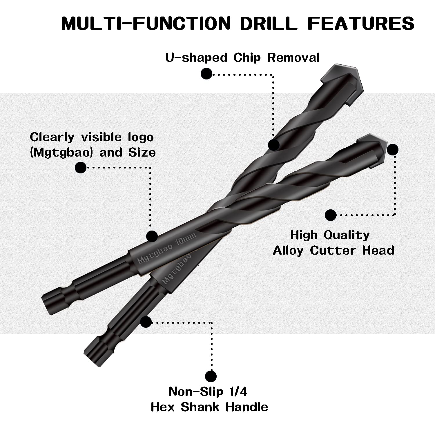 - ❹NEW DESIGN: U-shaped drain groove, spiral handle design, easy to remove chips during work, smoother drilling.