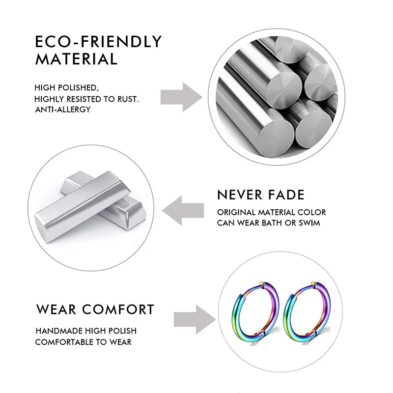 1PCS 2024 New Simple Stainless Steel Small Hoop Earrings for Women Men Cartilage Ear Piercing Jewelry Pendientes Hombre Mujer