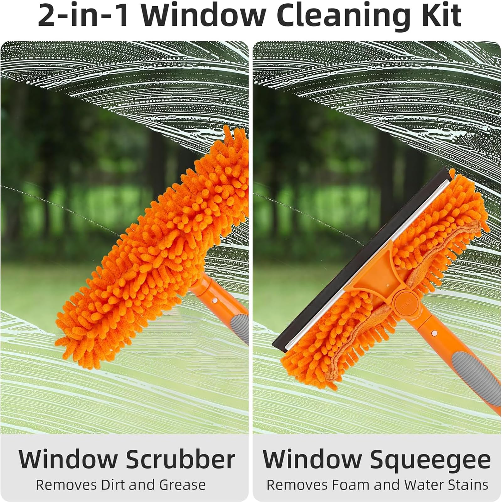 - [2-in-1 Professional Window Cleaning Tool] CHENCAILI extendable window cleaning kit features two sides: one with a microfiber cloth/chenille cover that effectively removes dirt, and the other with a squeegee for quickly drying surfaces without leaving streaks or scratches. It's a much more affordable alternative to hiring professional cleaning services, allowing you to get the job done at a significantly lower cost. Ideal for home use