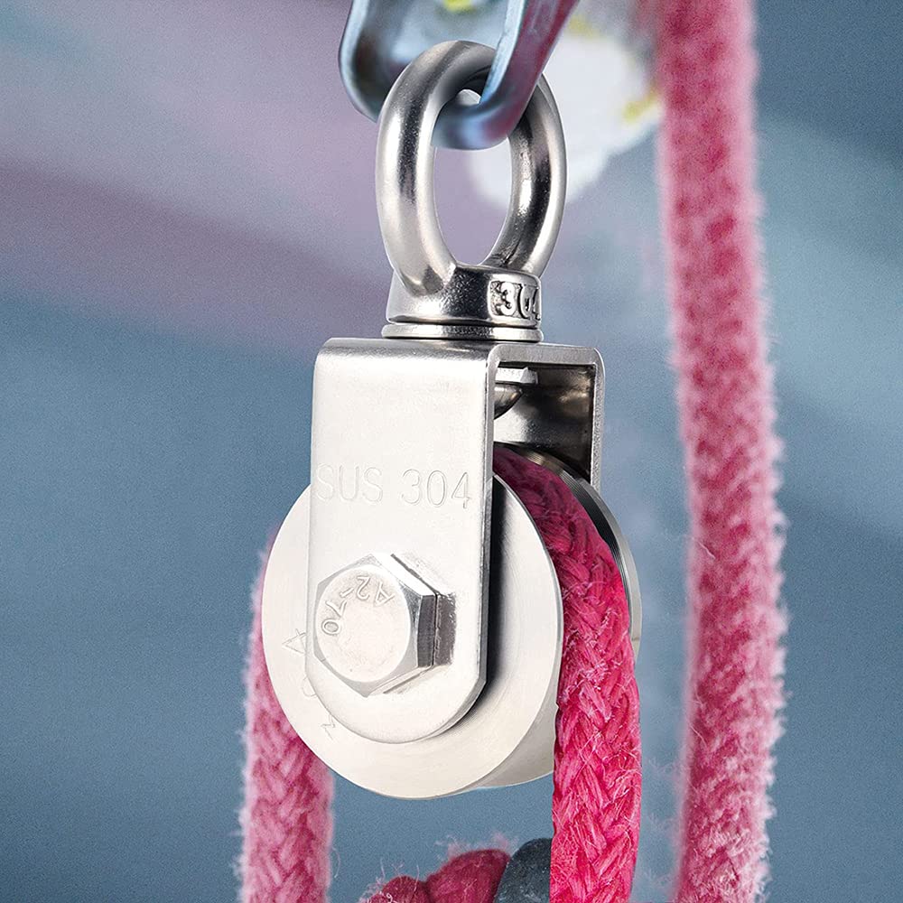 - 360 Degree Rotation: Swivel top m10 ring for ease rope handling, smooth m10 swivel pulley provides great rope traverse, widely used in tractive effort of steel wire rope or other rope tools. Suitable for 3-10 mm (0.11~ 0.4 inch) wire rope, cable or hemp rope, and more!