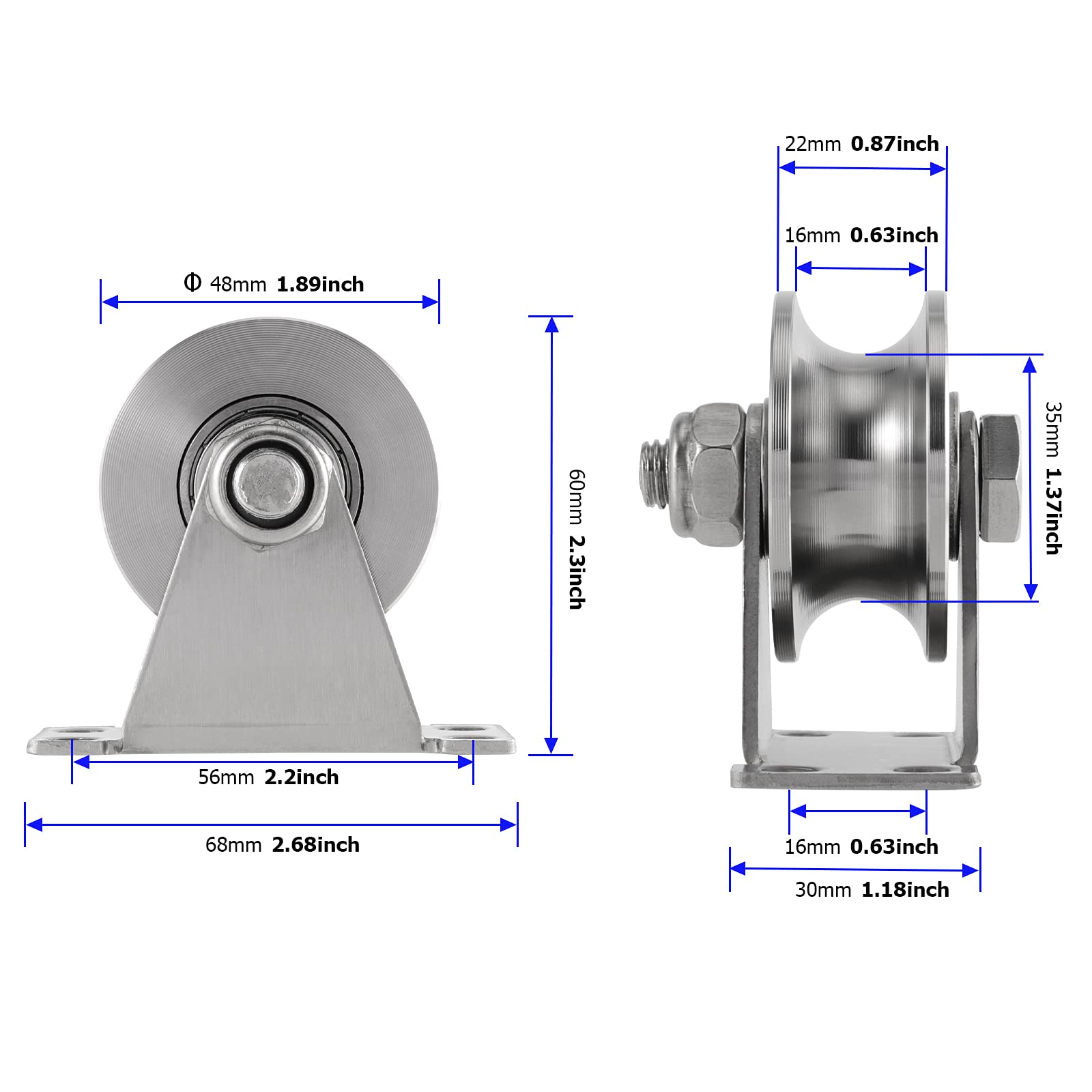 - HEAVY DUTY MATERIAL - Made of 304 stainless steel, the U type groove wheel has high strength, good rigidity, and excellent mechanical properties. This type of industrial-grade steel shows great resistance to abrasion, corrosion, and rust.