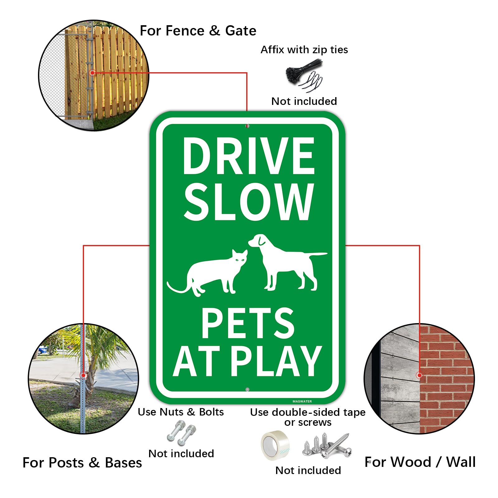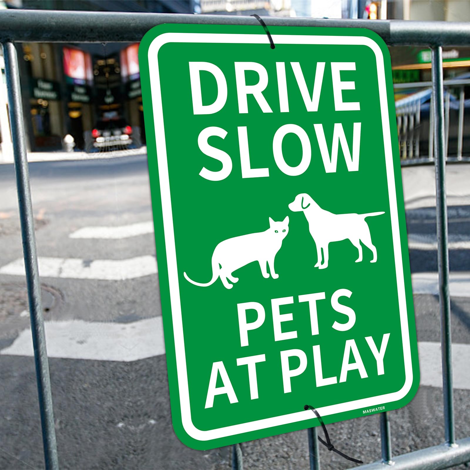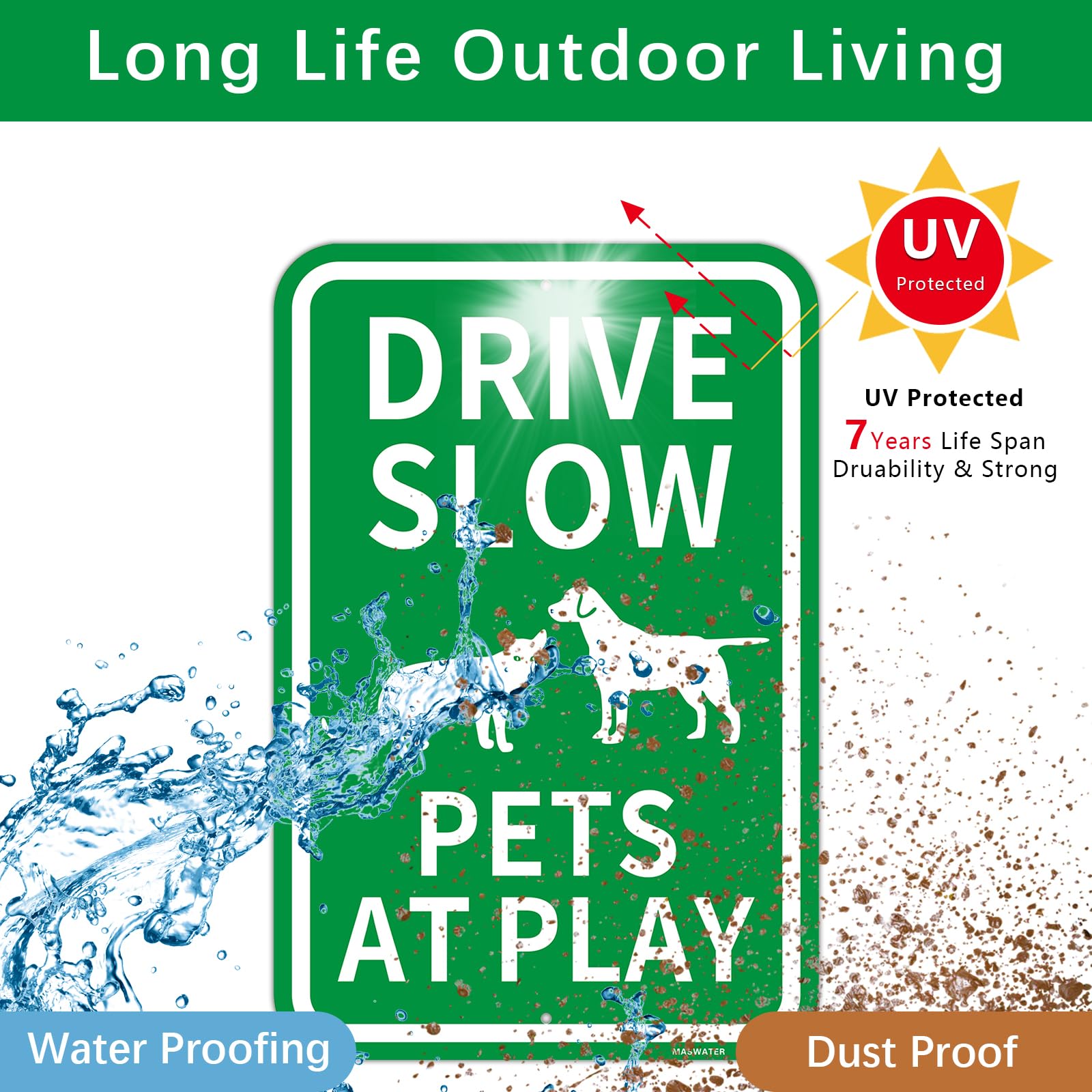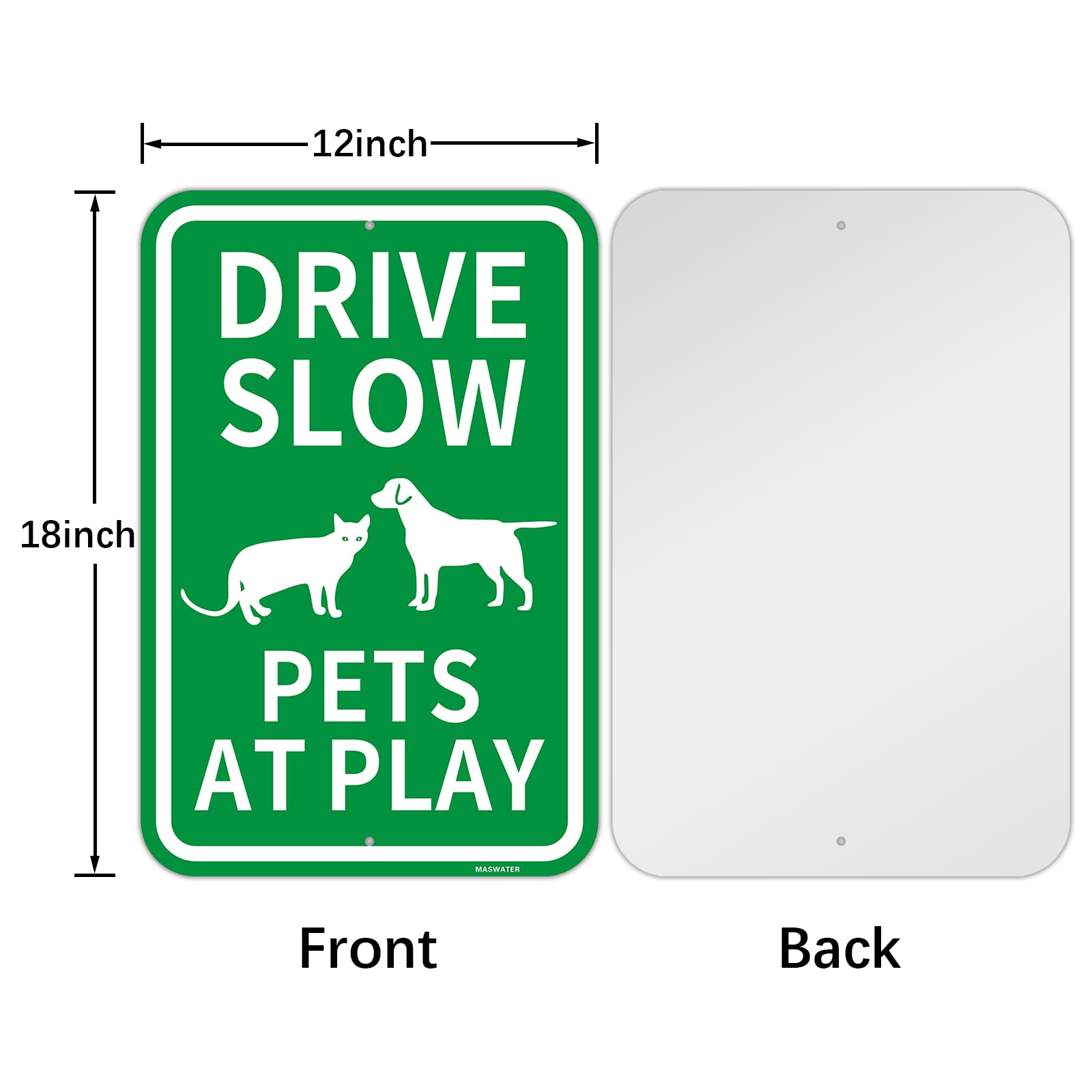2 Pcs "Drive Slow - Pets At Play" Sign, 12" x 18" Engineer Grade Reflective Aluminum,Fade Resistant, Waterproof, Dustproof, UV-Resistant and Durable