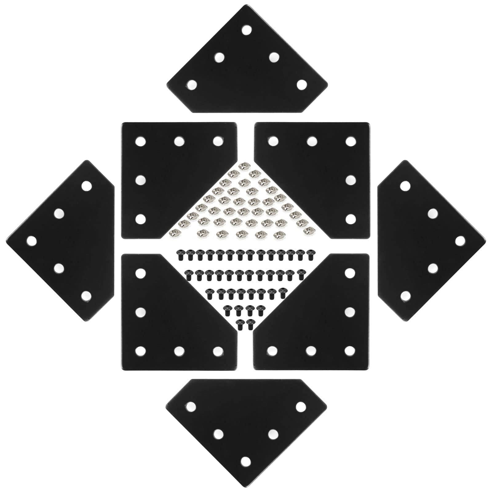 - 【What you will get?】Aluminum extrusion connector plate set included: 8Pcs X corner plate; 40Pcs X M5 Nut;40PcsX M5x8mm Hex Socket Cap Screw