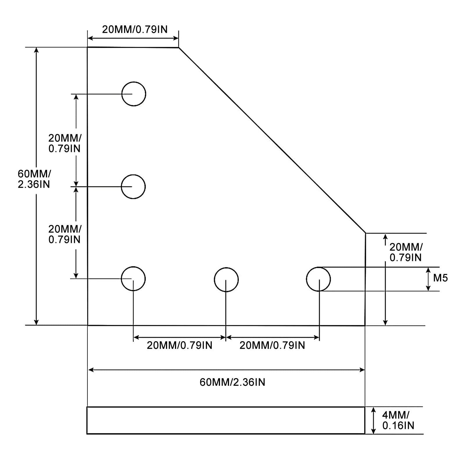 - 【Size】60mm Length X 60mm Width, 20mm Length X 20mm Width joint plate with M5 holes. Please see the size pictures.