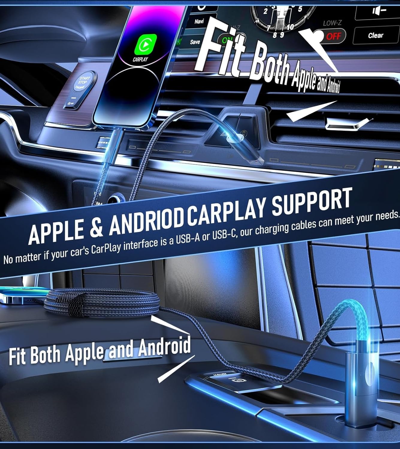- 【SEAMLESS CARPLAY & ANDROID AUTO】: Enjoy full compatibility with CarPlay and Android Auto systems. Multiple connection options ensure it works with a wider range of car models and phones for a smooth in-car experience.