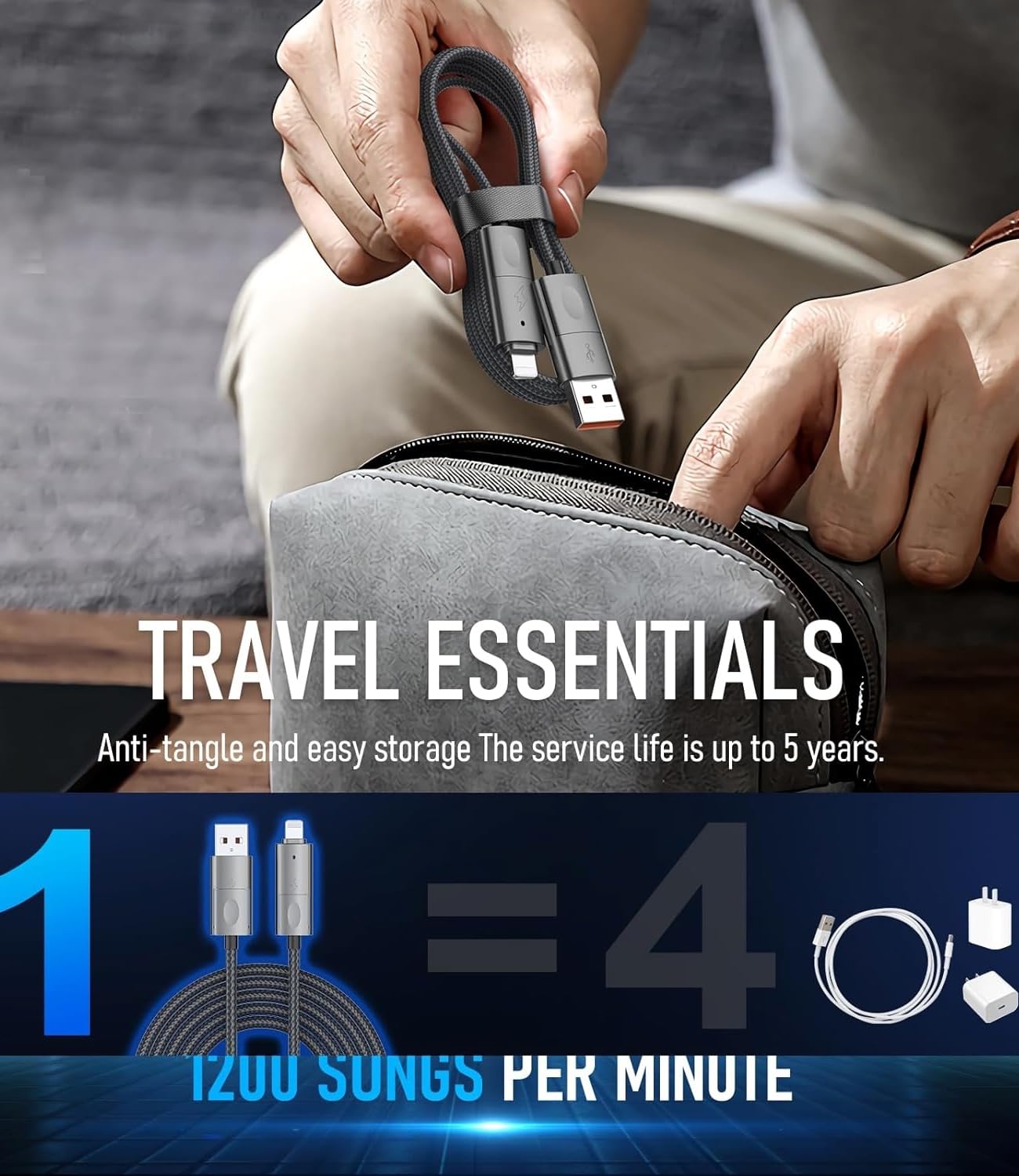 - 【ALL DEVICES, ONE CABLE】: Ditch the cable clutter! This 4-in-1 charging cable combines USB A to C, USB A to L, USB C to C, and USB C to L ports. Charge and sync virtually any phone, tablet, or laptop with a single, compact solution. Includes a convenient travel tie.