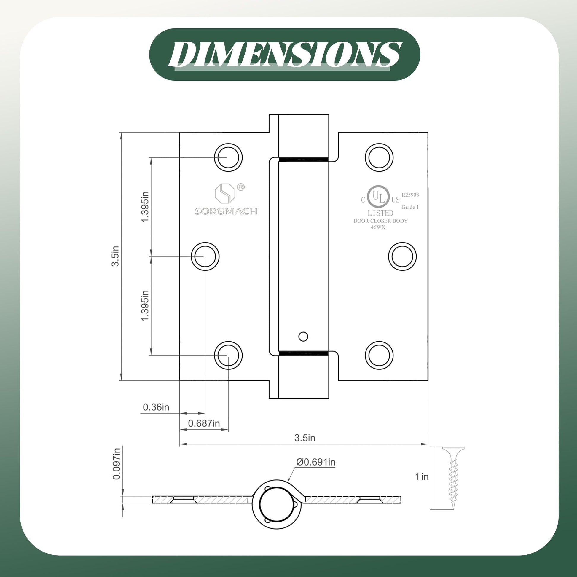 - 【Specifications】We offer 3 pieces of 3.5 x 3.5 inch self closing door hinges with a thickness of 0.097 inches, featuring square angles and 6 holes, suitable for doors 1-3/4 to 2 inches thick.