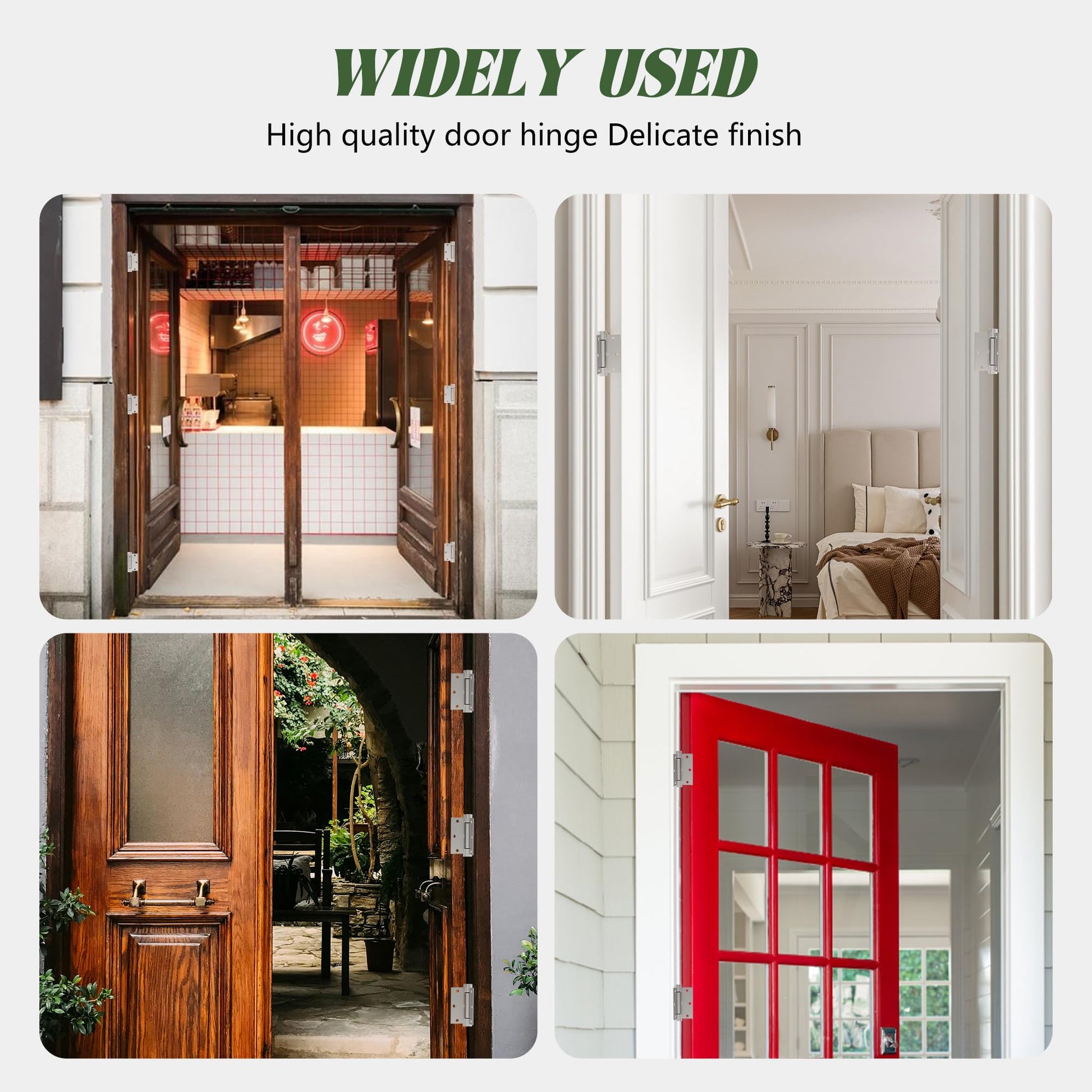 - 【Modern Soft Close Door Hinges】The satin nickel automatic closing door hinge has a smooth surface and is suitable for doors of various colors, making them look more modern. It is suitable for indoor doors such as offices, kitchens, bathrooms, bedrooms, living rooms, classrooms, and double folding door hardware.