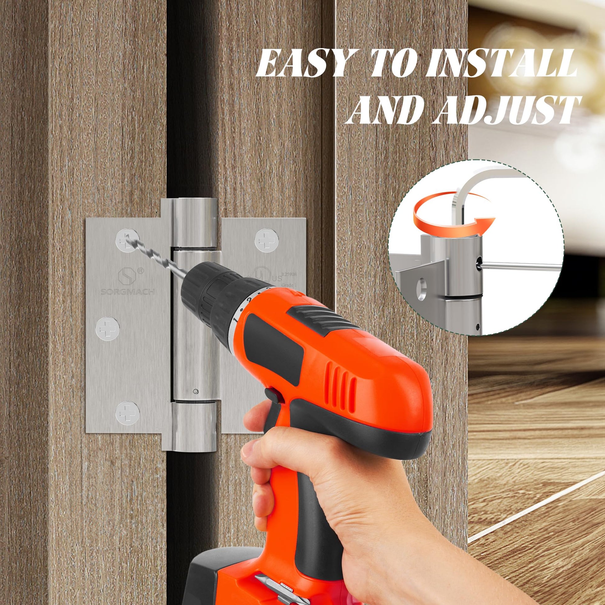 - 【Safety Certification】Satin nickel spring loaded hinges have UL certification. We care about your quality of life. The auto door closer hinge center axis includes damping oil function, which aims to reduce friction between metals. It is made of high-quality iron, waterproof and rust proof, and can last for a long time.