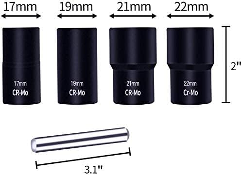 - 【Packaged include】Comes with 5pcs tools, includes 1/2 inch drive lug nut remover and four sockets(17mm, 19mm, 21mm, 22mm).