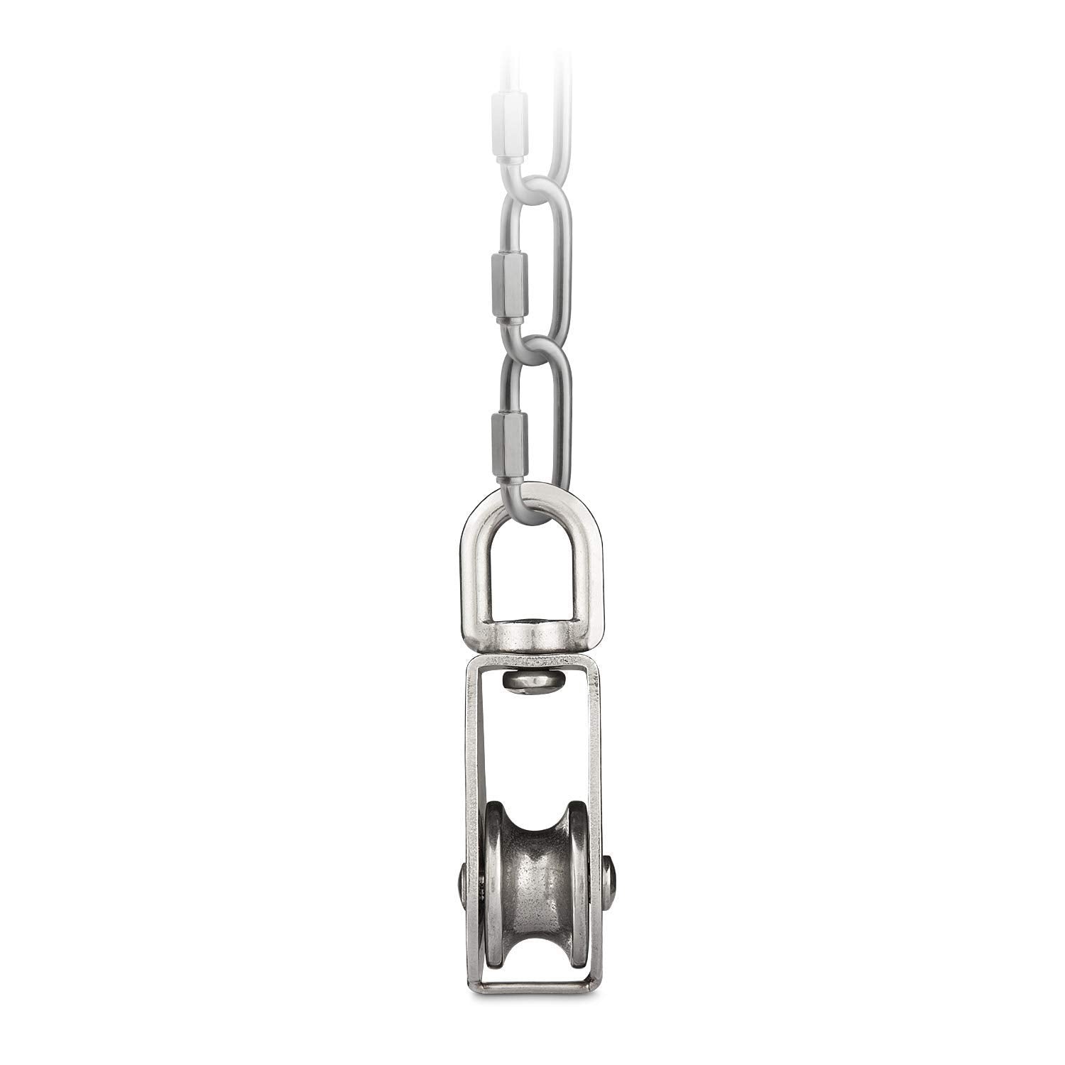 - OUTSTANDING DESIGN: The 304 stainless steel pulley features a bearing structure and a 360-degree swivel design that prevents rope kinking. It not only changes the direction of force, but also provides power for rotational motion, providing mechanical advantages in linear or rotational systems. Lifting heavy loads becomes a breeze for a wide variety of applications