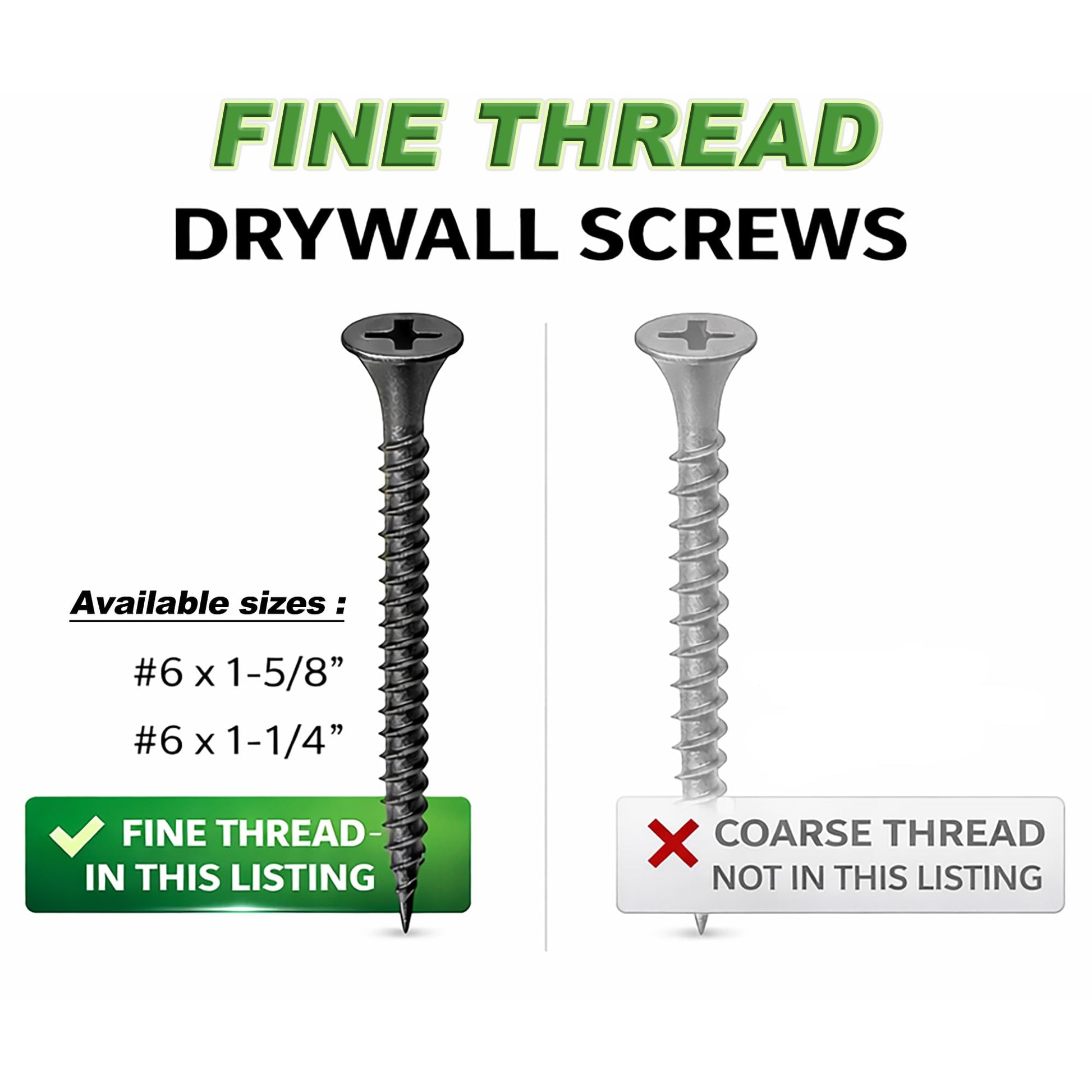Details: #6 x 1-1/4" Drywall Screws – 500pcs are built for contractors, remodelers, and serious DIYers who need reliable performance in larger quantities. The sharp point and fine thread provide strong holding power in both wood and metal studs.