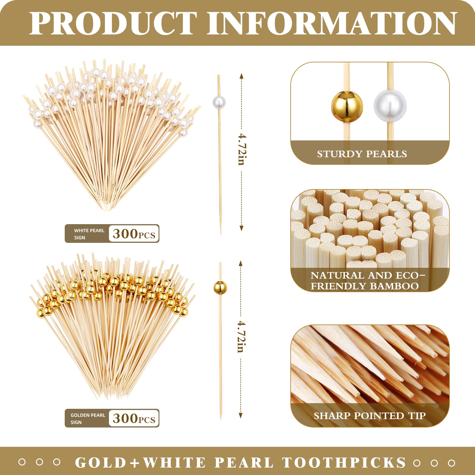 - 【Cocktail Picks Set】: You will get 600pcs bamboo toothpicks, available in 2 different styles, 300 pink pearl toothpicks for appetizers and 300 gold pearls food picks, suitable for different foods, and is perfect for serving appetizers, cocktails and snacks at any party