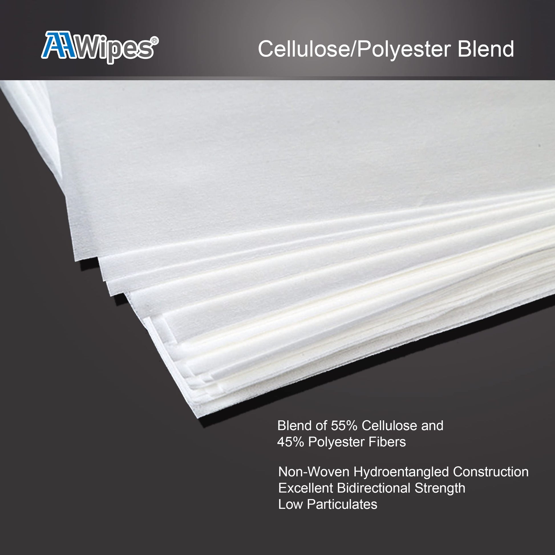- MATERIAL: Fabricated from a hydro-entangled, non-woven blend of 55% cellulose and 45% polyester. This fabric blend combines the highly absorbent properties of a natural fiber with the cleanliness and strength of a synthetic wiper.